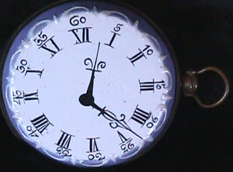 A Bilston Enamel Faux Pocket Watch, Circa 1780, painted one side with