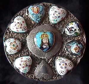 This rare piece has nine English enamel hearts